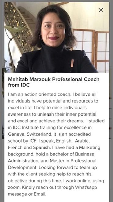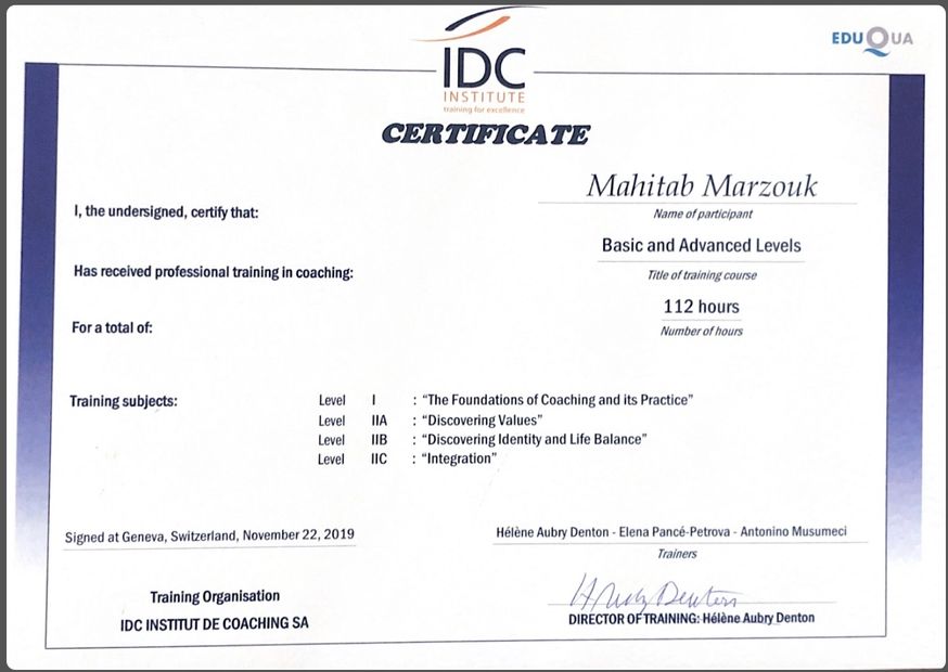 Mahitab Marzouk holds a BA in Business Administration and a Master’s degree in Professional Development from the American University in Cairo (AUC). She has managerial and marketing experience as she worked for years in multinationals such as Unilever and Clorox. She re-invented herself in early 2019 and discovered her life purpose which is coaching women to lead their deserved life. Hence, she studied and got her certification from IDC, Switzerland and became an Associate Certified Coach from the ICF. This is why she studied and got her certification from IDC, Switzerland and the International Coaching Federation. As a thinking partner, she works with former executive women who feel stuck and bored to find their passion and sense of purpose, through the positive intelligence approach. Mahitab believes that women are empowered to move forward, making things happen while managing actions and change.